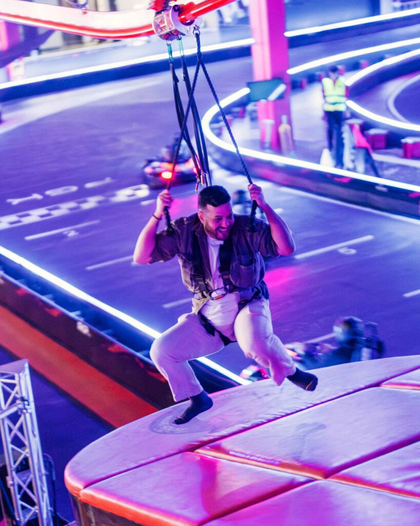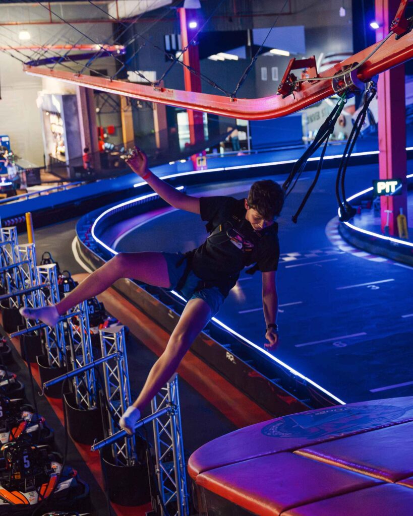 Both adults and children alike can ride for an exhilarating aerial view of Route7. You’ll start your trip by taking off over our laser tag arena and glide over 60,000 square feet of fun!